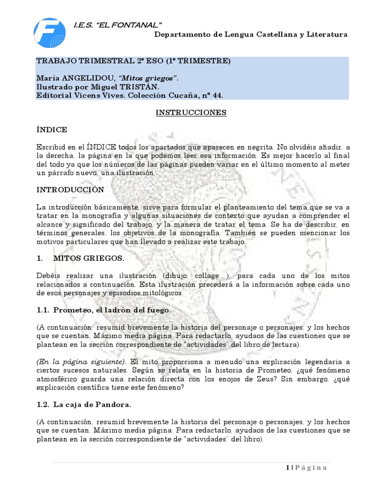 TRABAJO TRIMESTRAL MITOS GRIEGOS 2º ESO 1º TRIMESTRE 😈