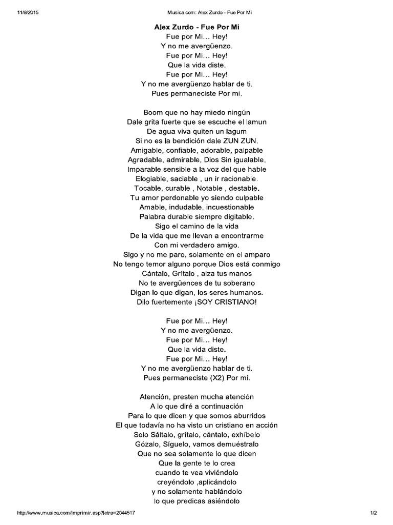 Letra de Fue Por Mi de Alex Zurdo MUSICA 😈