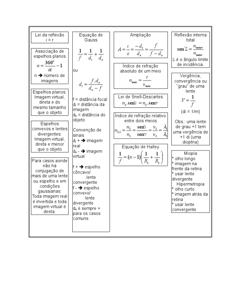 Óptica em 2021 | Fórmulas física, Planos de estudo enem, Resumos enem 😈