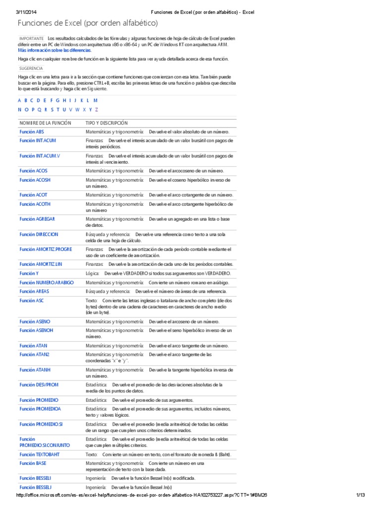 Funciones de Excel Por Orden Alfabético Soporte ... 😈