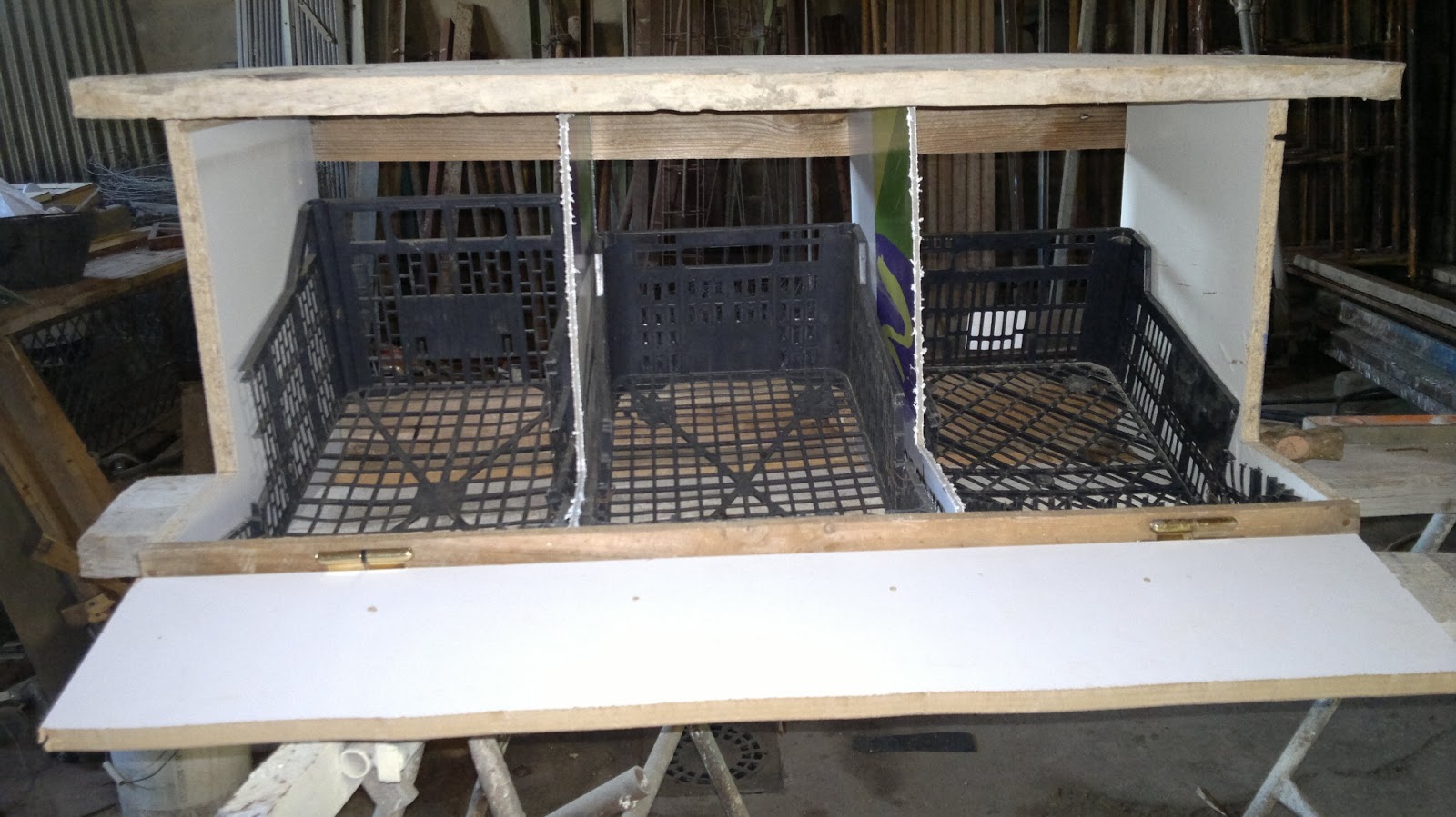 Nidos para gallinas hechos con tanques plásticos. Son ... 😈