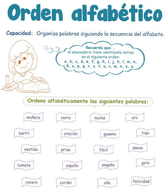orden alfabetico trabajos Hojas de trabajo de ELE gratuitas 😈