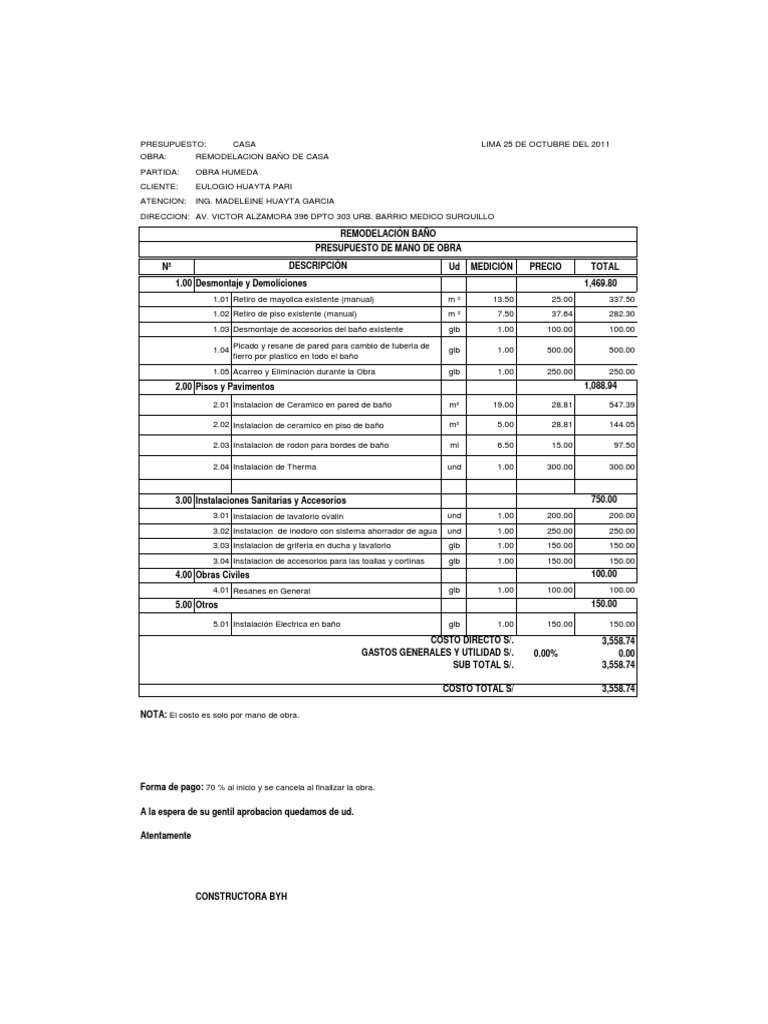 Ejemplo De Un Presupuesto Reforma Baño : Presupuesto Reforma Baño Mejor ... 😈