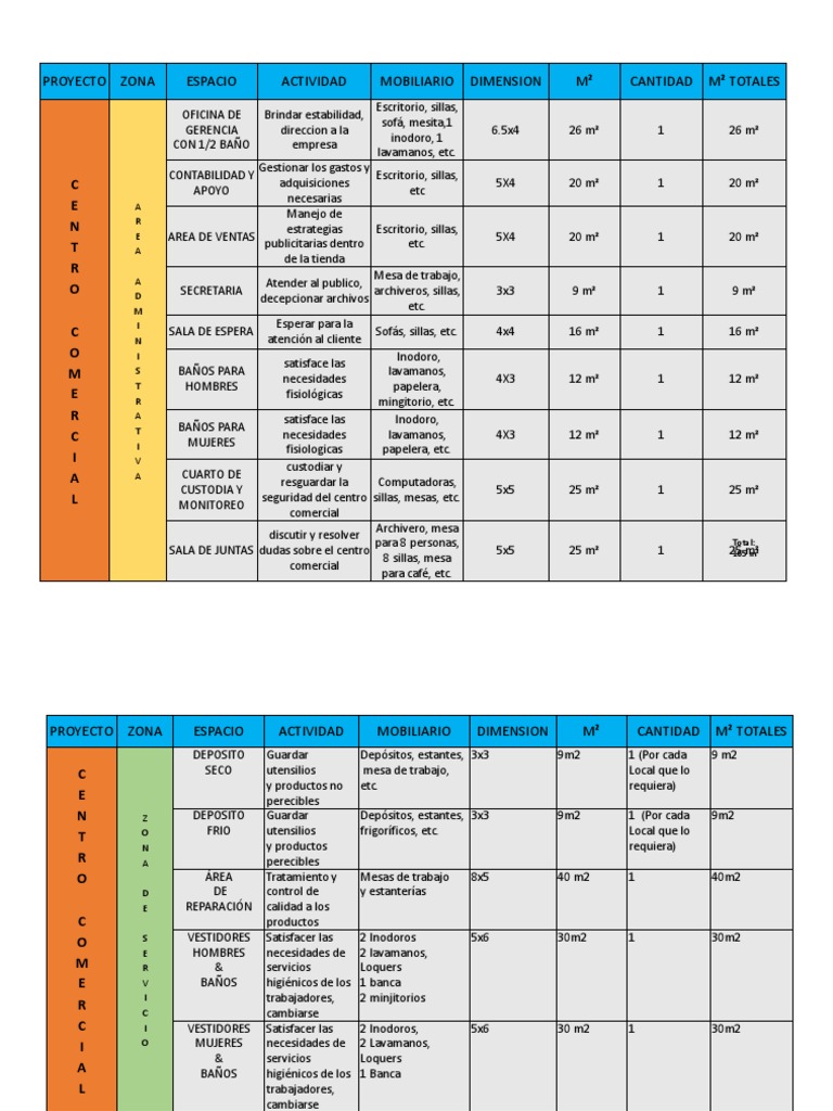 Programa Arquitectonico General CENTRO COMERCIAL | Industrias | Deportes 😈