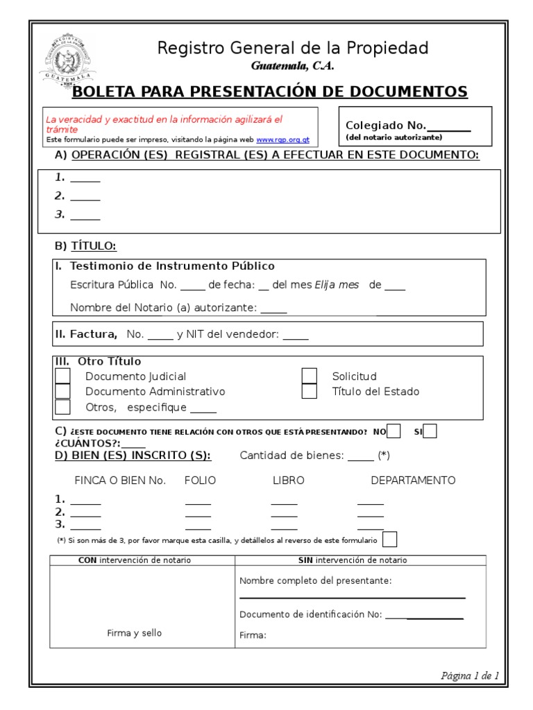 Boleta de Presentacion de Documentos al Registro de la Propiedad Guatemala 😈