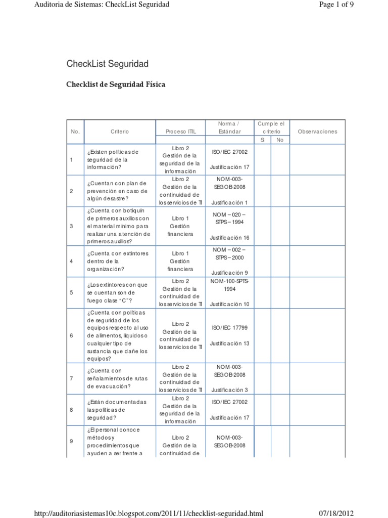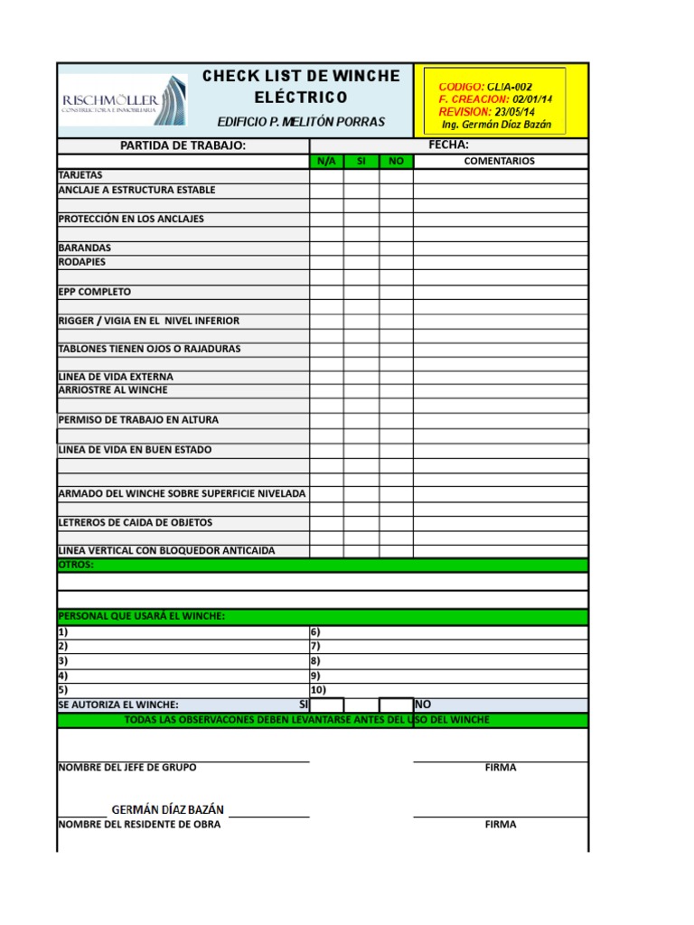 Check List De Inspección De Instalaciones: Obra / Sede inspeccionada ... 😈