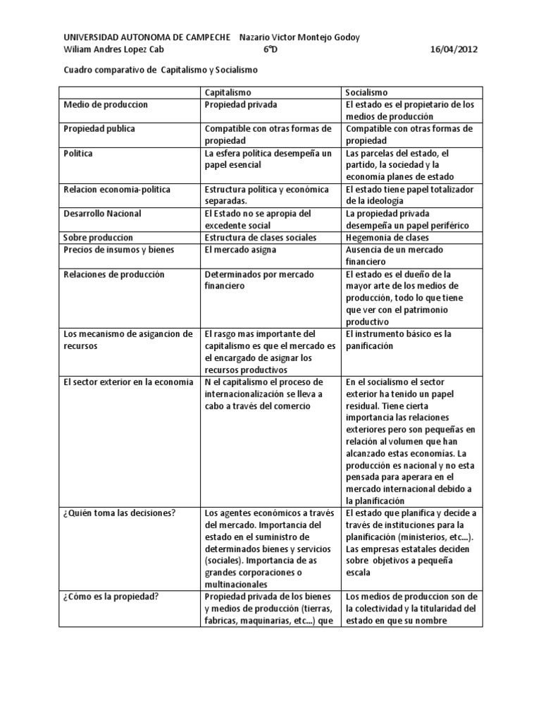 Cuadros comparativos capitalismo y socialismo 【Descargar】 😈