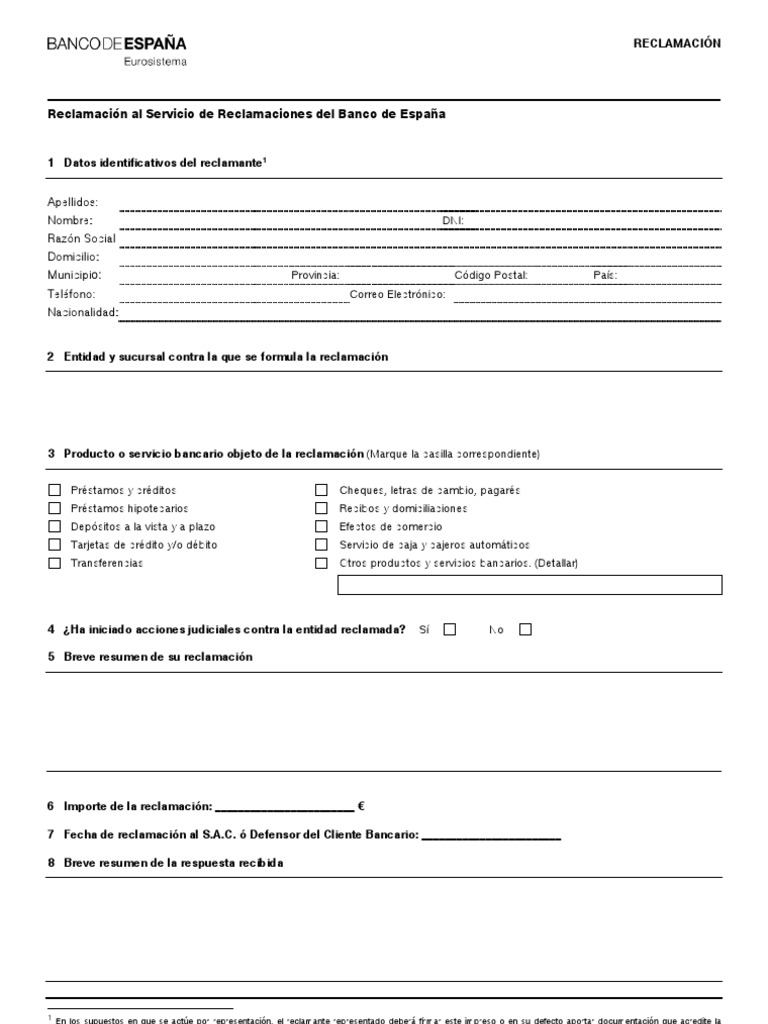Formulario tipo para reclamar ante el Banco de España ... 😈