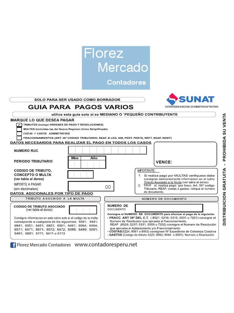 Guia de Pago Varios SUNAT Formulario Rellenable 😈