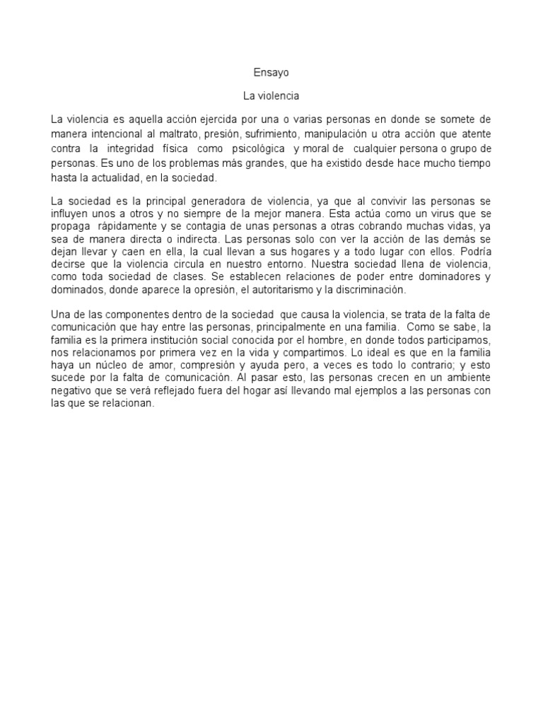 Ensayo Acerca de La Violencia | Violencia | Sicología y ciencia cognitiva 😈