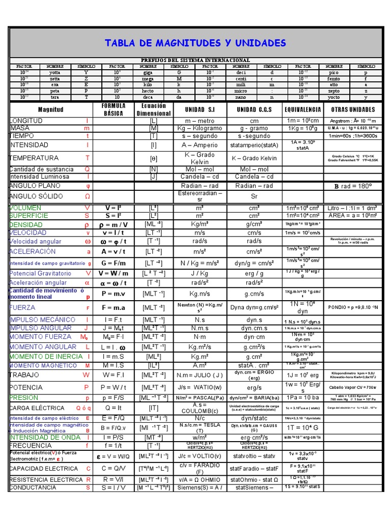 Tabla de Magnitudes Fisicas | Celsius | Unidades de medida 😈