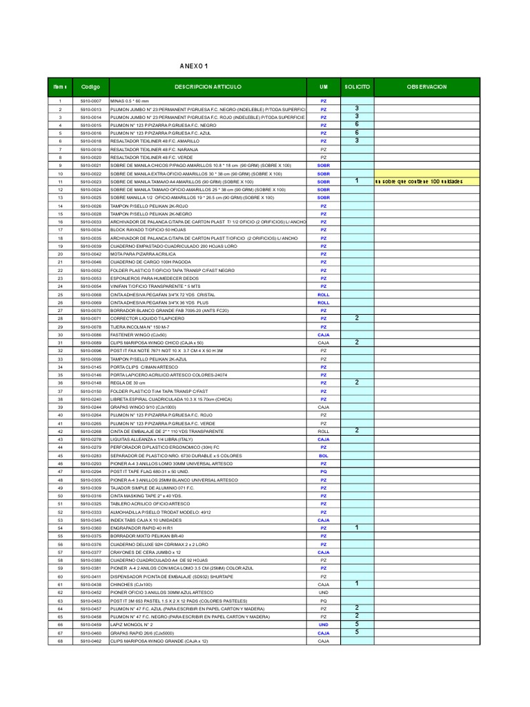 Lista de Utiles de Oficina Abril 2015 😈
