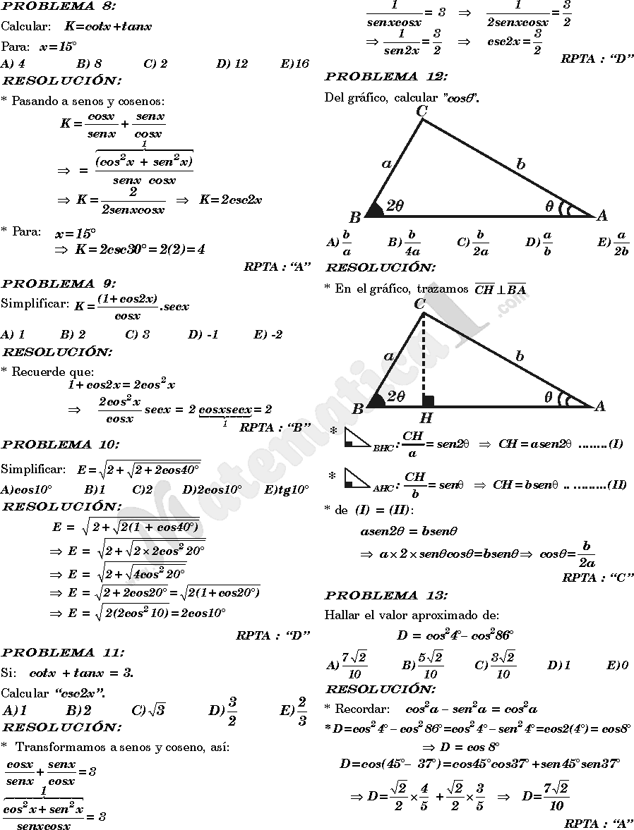 FUNCIONES TRIGONOMÉTRICAS DEL ARCO DOBLE Y MITAD PROBLEMAS ... 😈