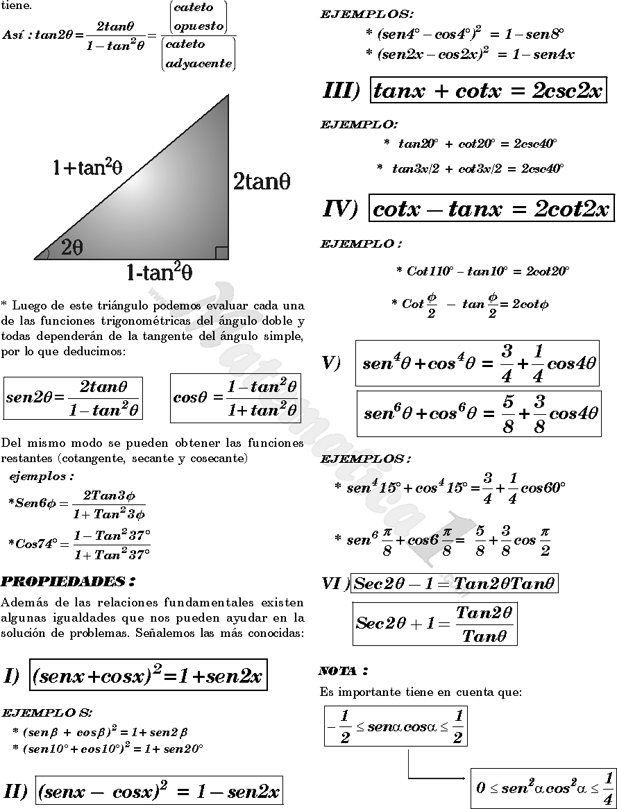 Trigonometría. Razones del ángulo mitad, doble, suma y ... 😈