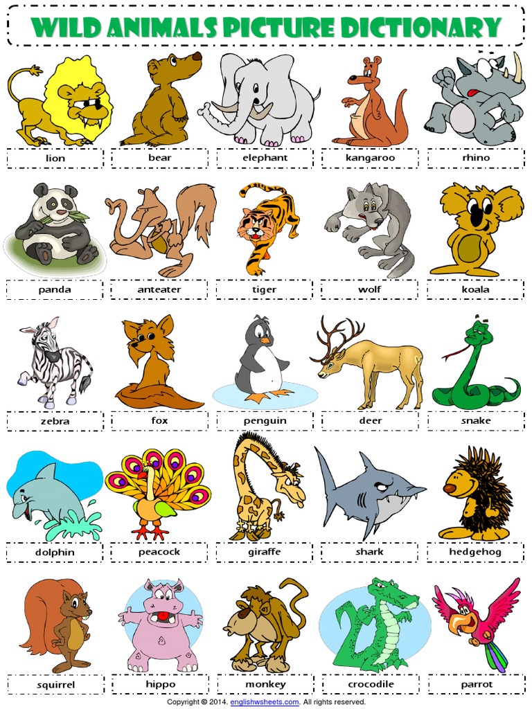 wild animals picture dictionary esl vocabulary worksheet.pdf π