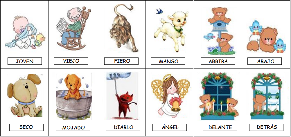 Opuestos, antónimos o contrarios, tarjetas para trabajar ... 😈