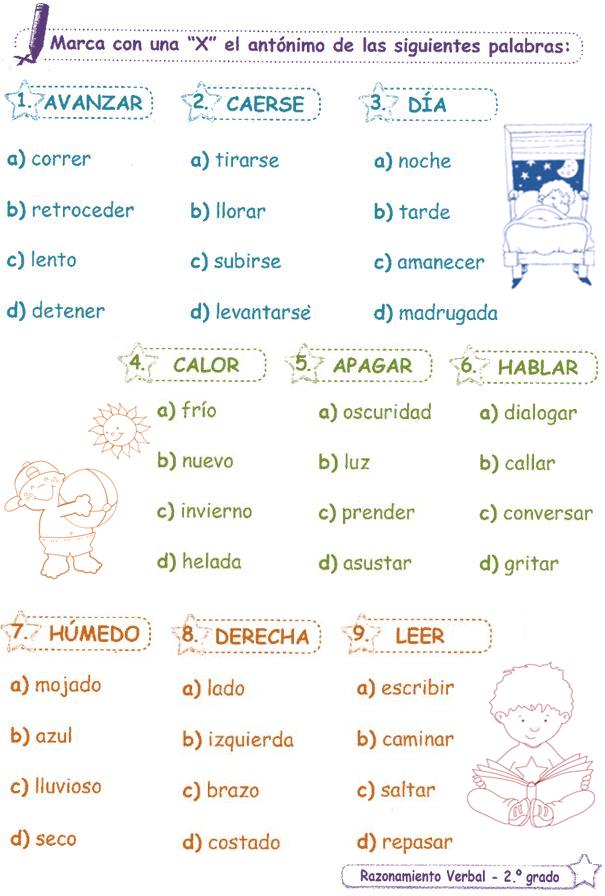 Antónimos para Niños 2º | Razonamiento Verbal 😈
