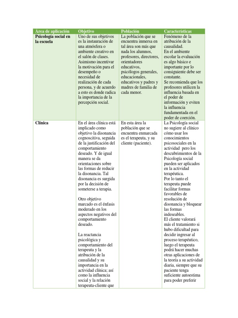 Cuadro Comparativo de Las áreas de La Psicologia 2 | Psicoterapia ... 😈