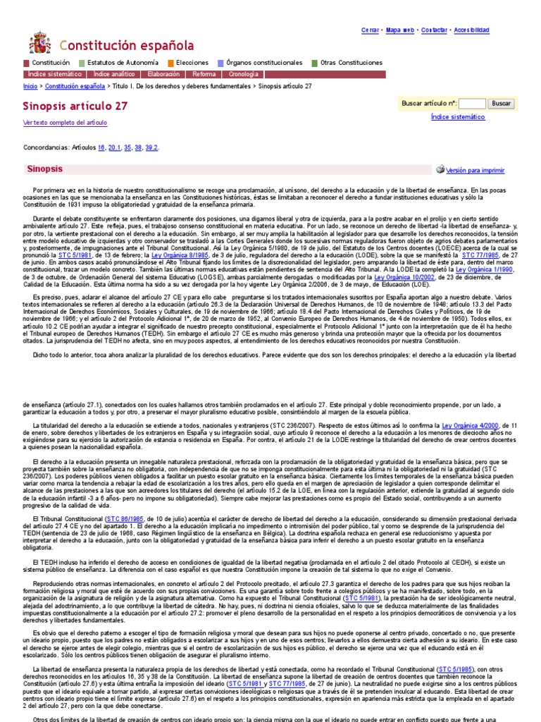 Art. 27 de La Constitución Española 1978 . El Derecho a ... 😈
