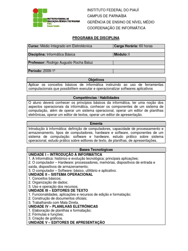 Plano_de_Curso_ _Informática_Básica.pdf | Programas ... 😈