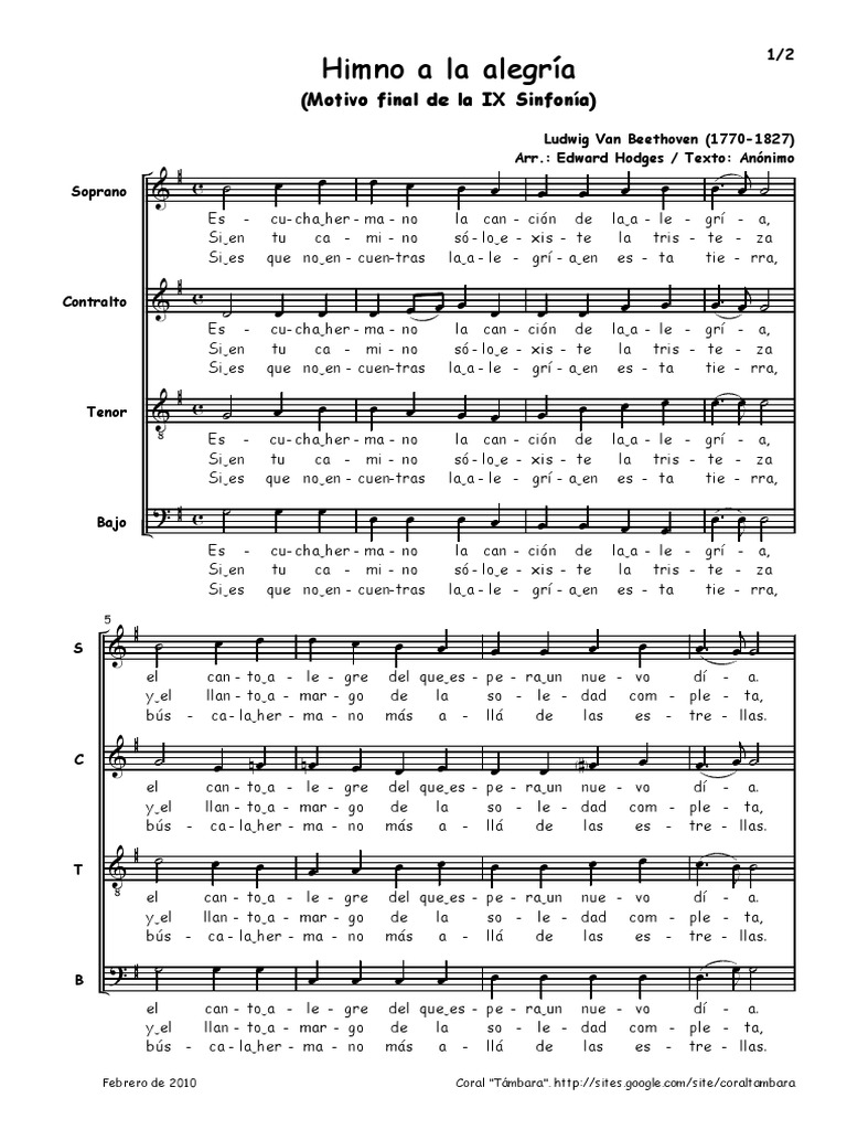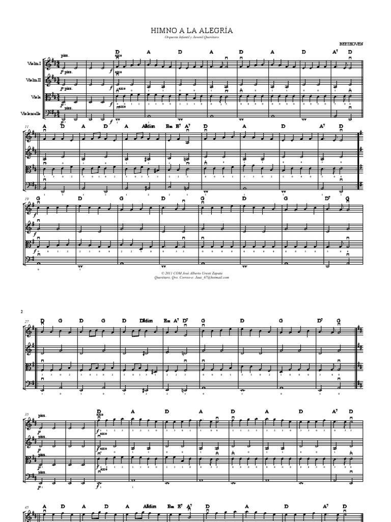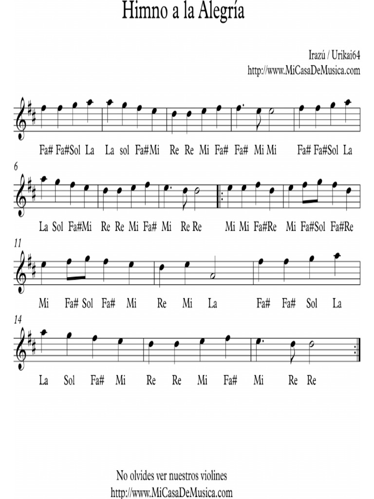 PARTITURAS PARA VIOLIN.: EL HIMNO A LA ALEGRIA Letra y ... 😈