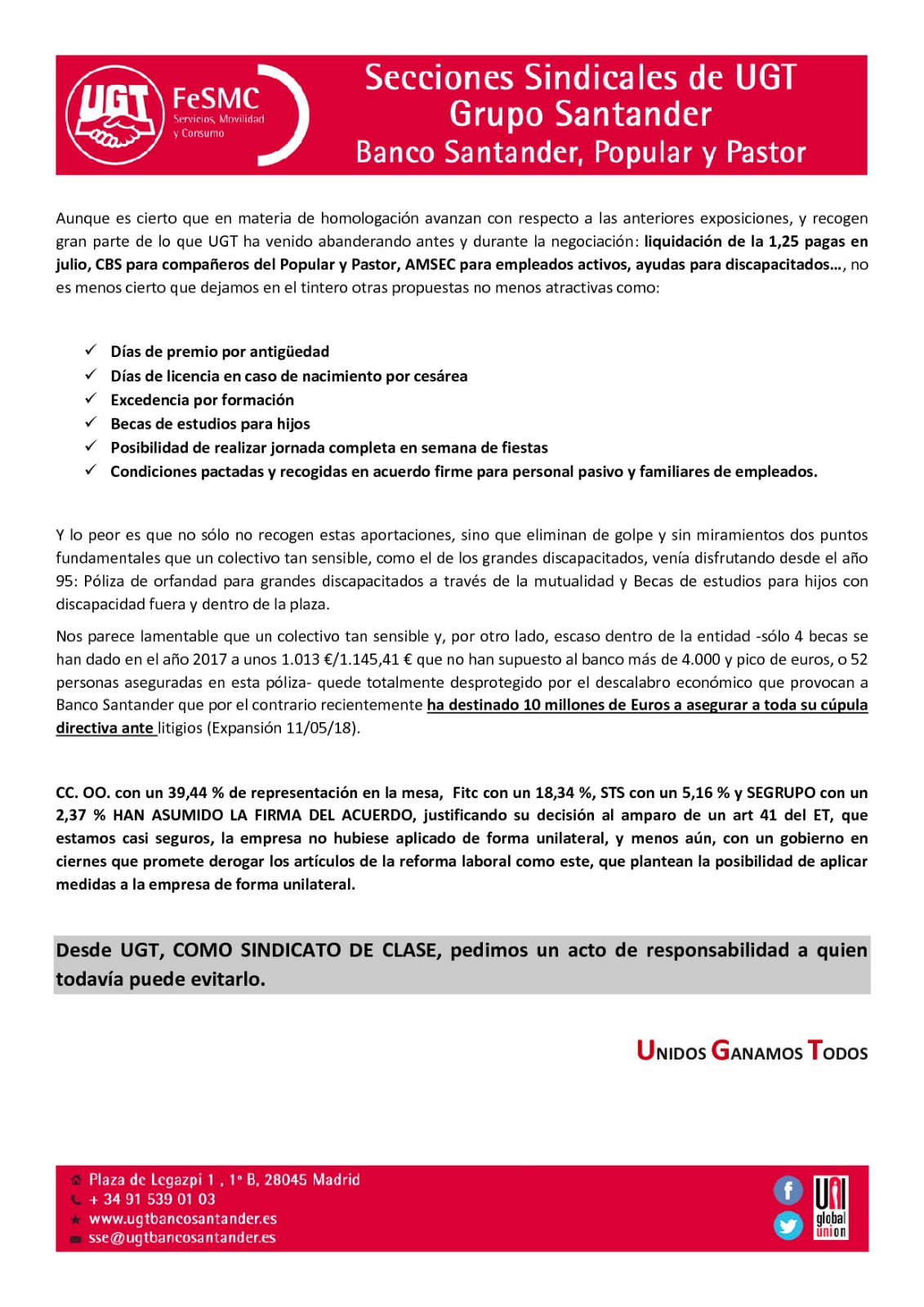 SECCIÓN SINDICAL DE UGT MADRID EN BANCO SANTANDER el ... 😈