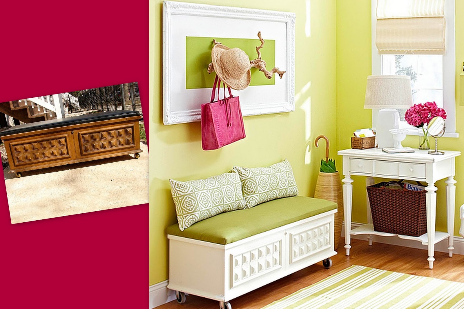 Sapateira no hall de entrada | Banco baú de madeira ... 😈