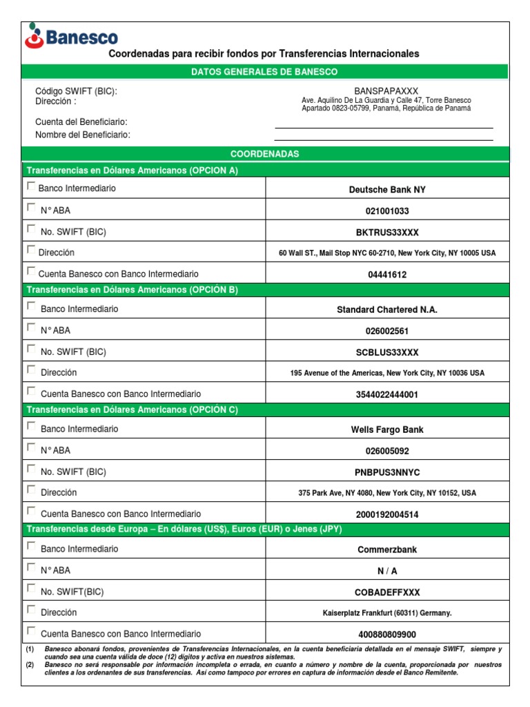 Coordenadas Para Recibir Transferencias. Banesco Panama 😈