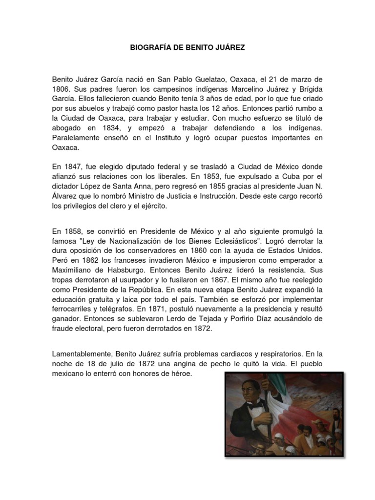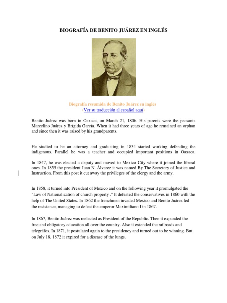 Biografía de Benito Juárez en Inglés | Religion & Spirituality | Prueba ... 😈