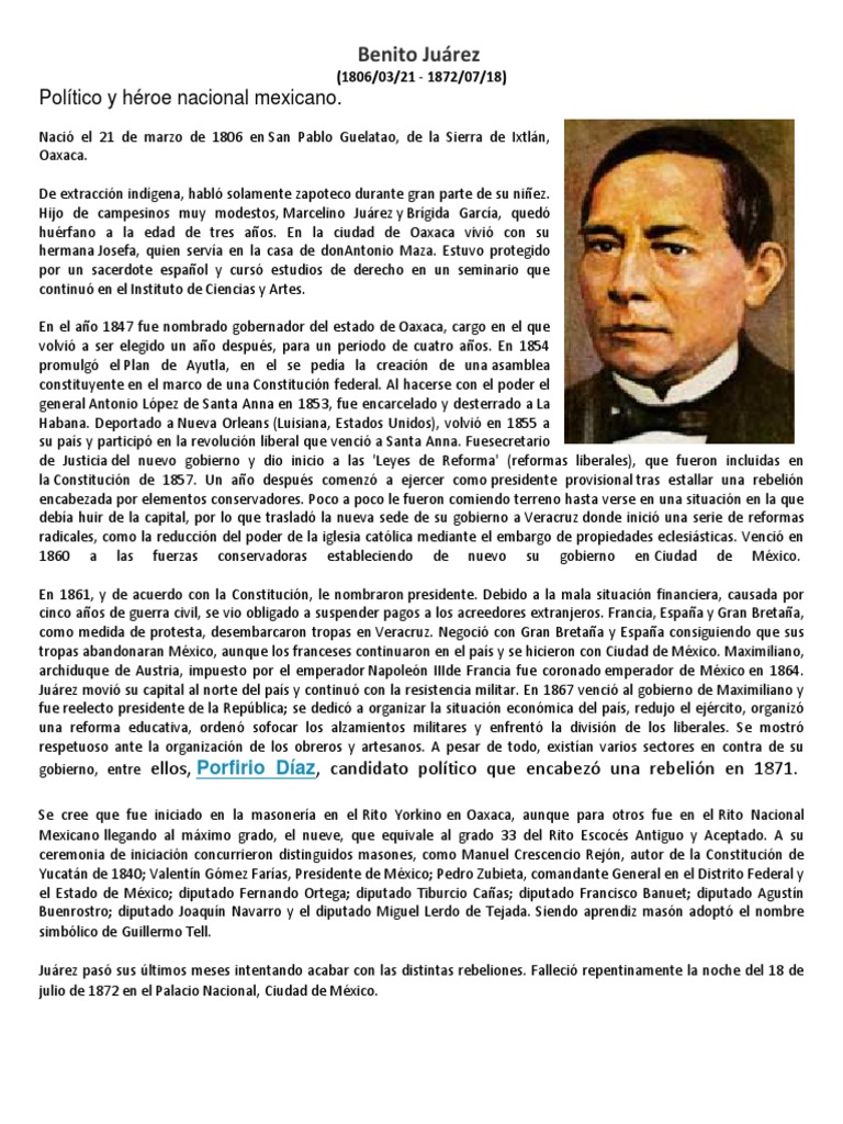 Biografía de Benito Juárez.docx, maximiliano y porfirio diaz | Politica ... 😈