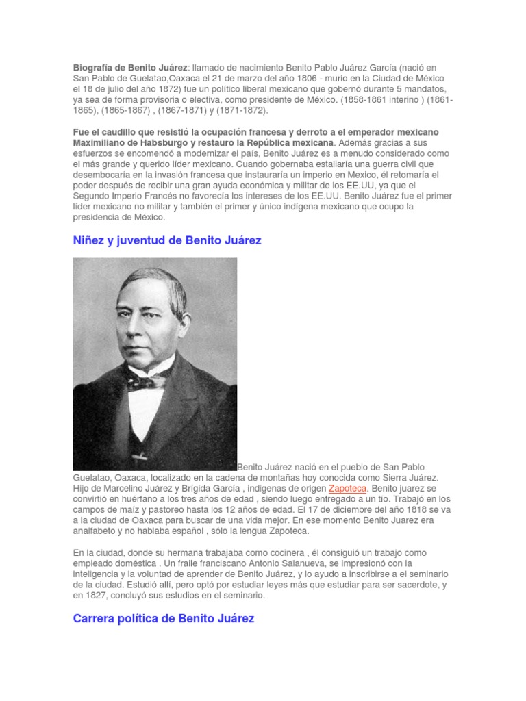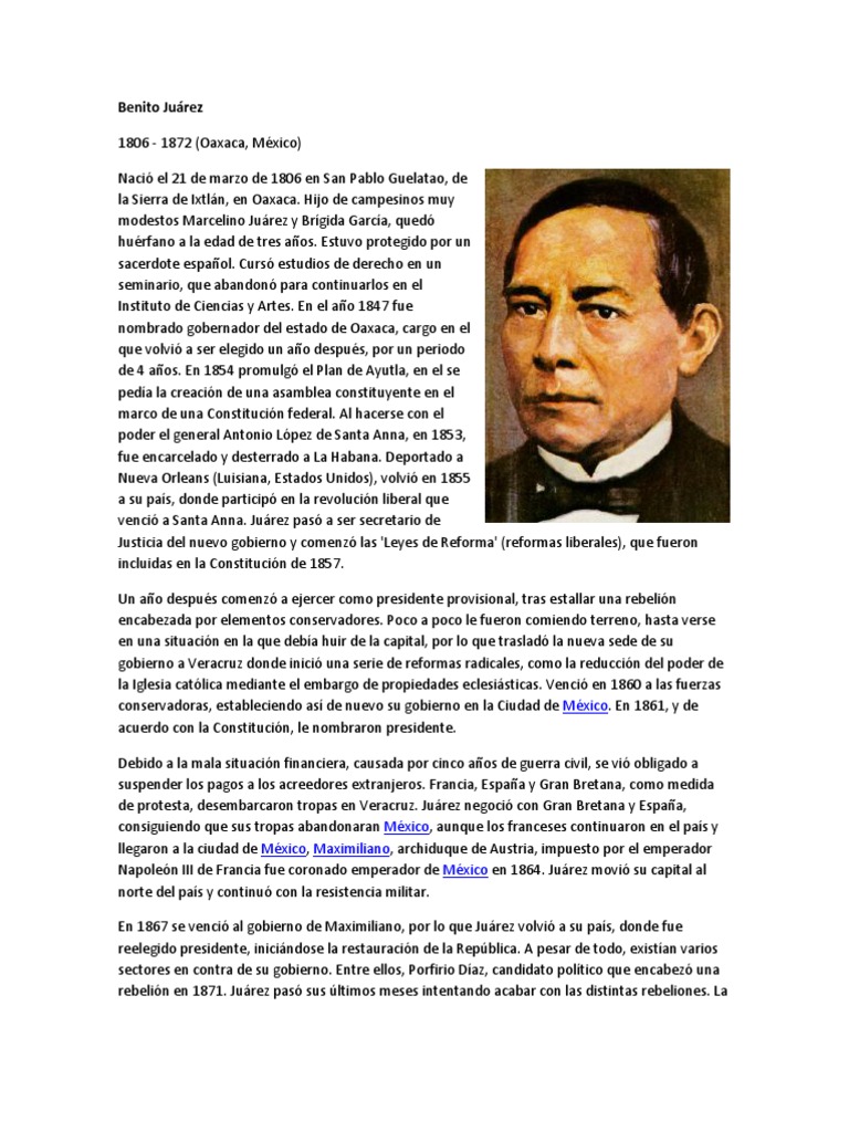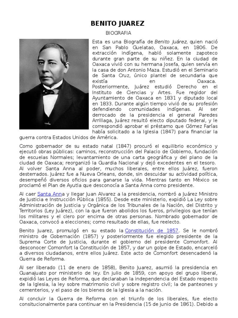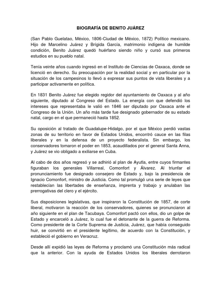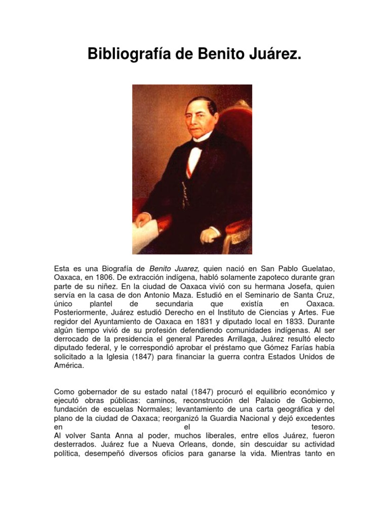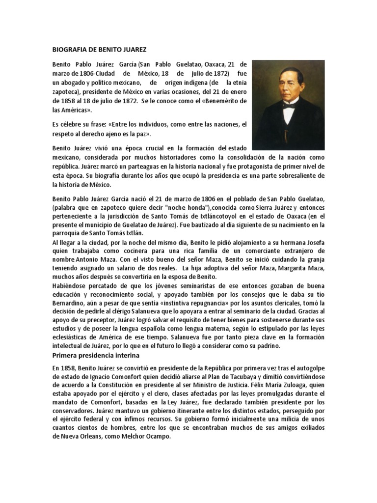 Breve Biografia de Benito Juarez Benemerito de Las Americas | PDF ... 😈