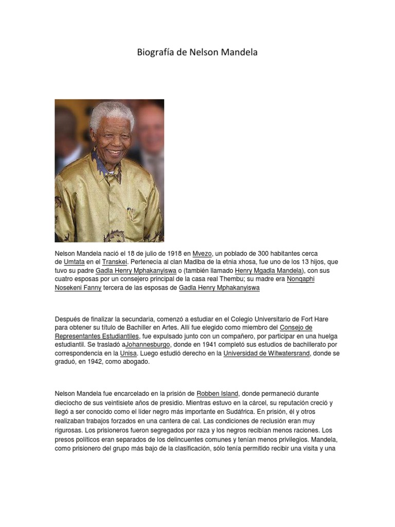 Biografía resumida de nelson mandela. Vida y obra de ... 😈