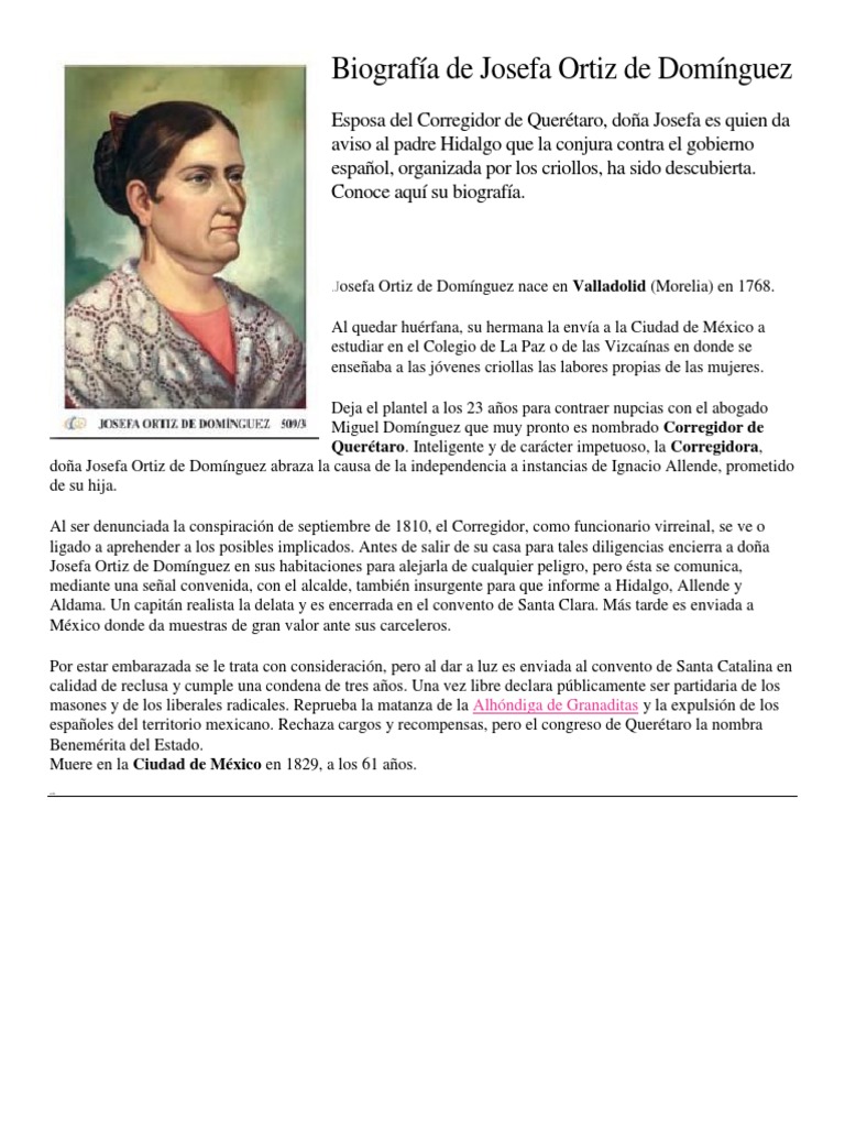 Biografía de Josefa Ortiz de Domínguez | Colonización española de las ... 😈