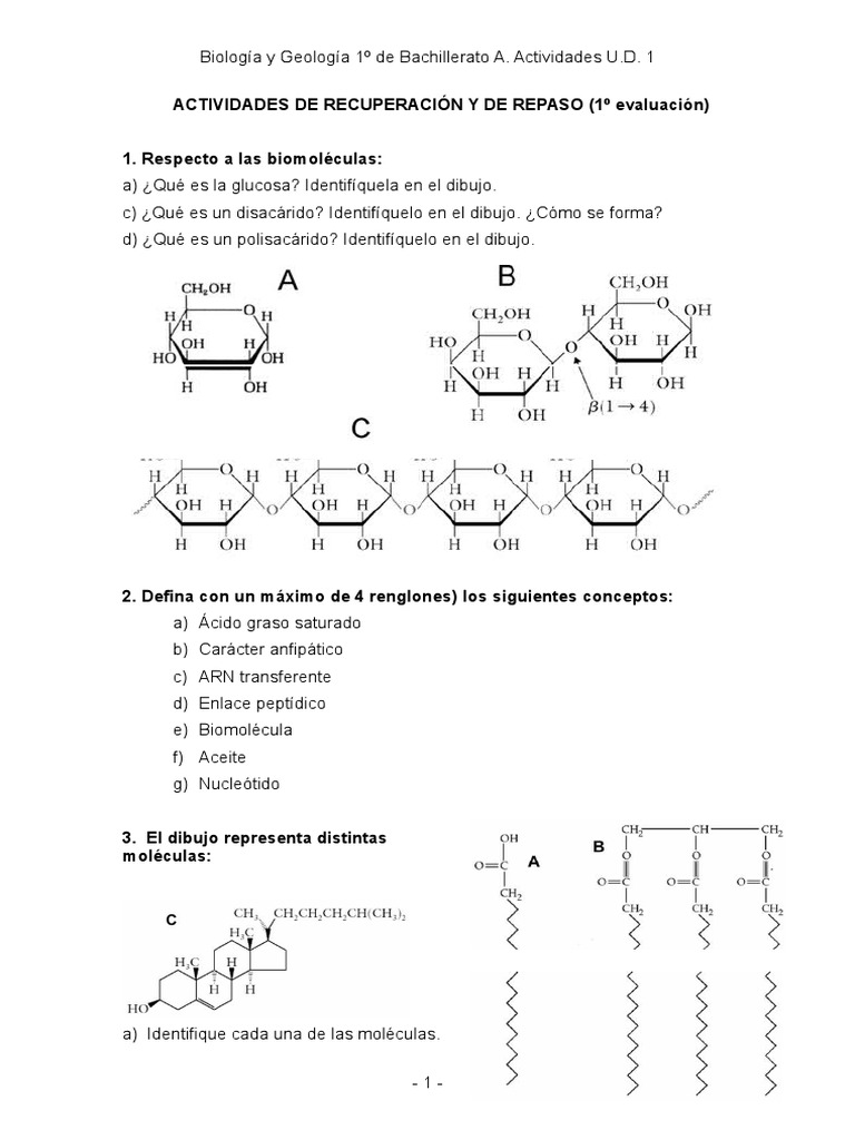 Actividades Tema 1 1 Bach | Biomoléculas | Célula Biología 😈