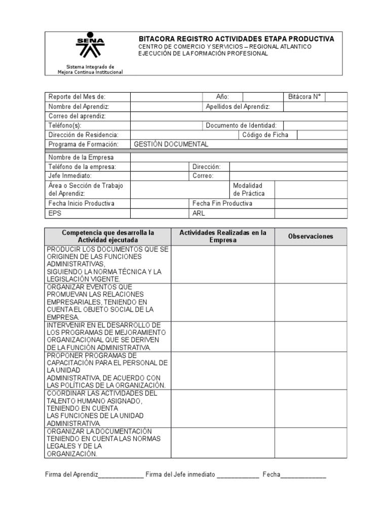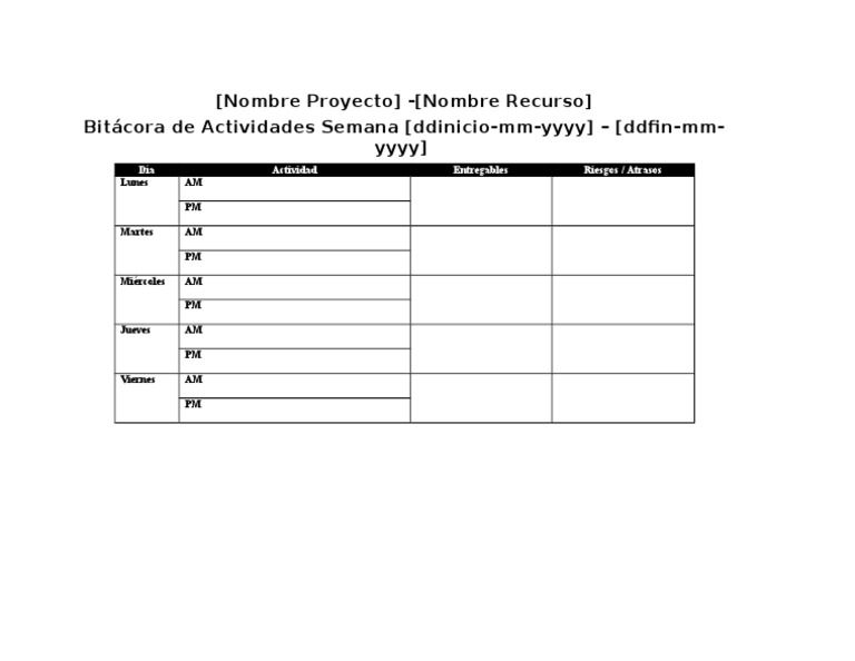 Formato Bitácora de Actividades Ejemplo | Ciencia y Tecnología | Ciencia 😈