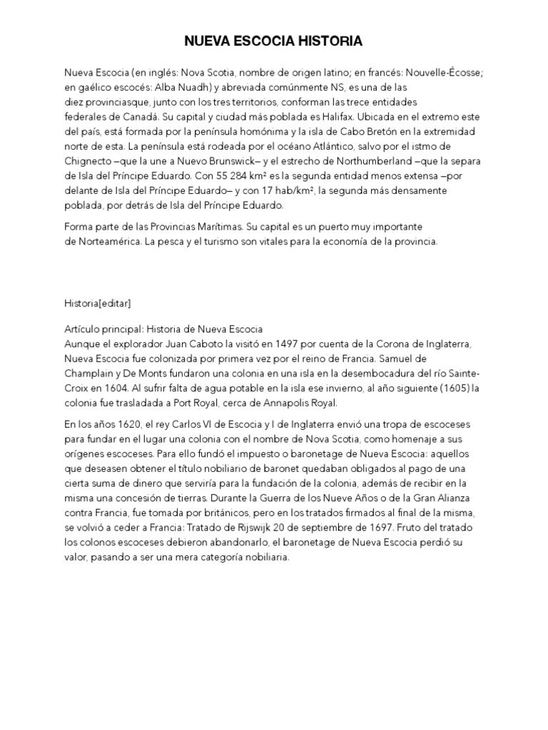 Historia Breve de Nueva Escocia | nueva Escocia | Agitación 😈