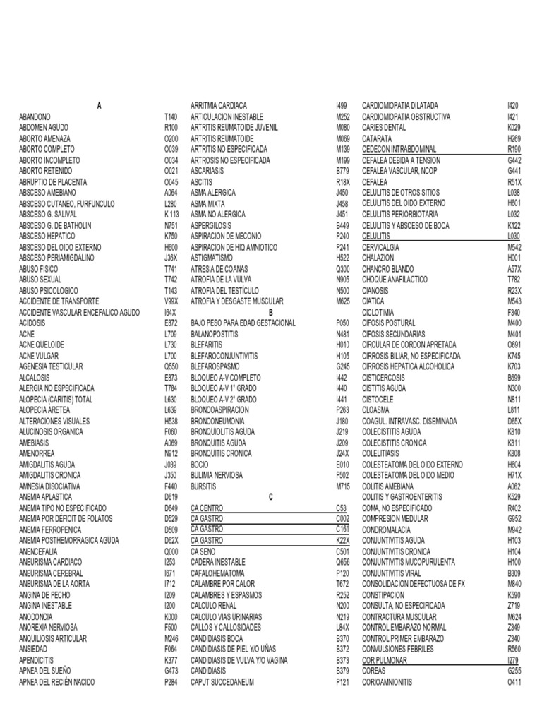 Codigos de Diagnostico Mas Frecuentes Del Cie 😈