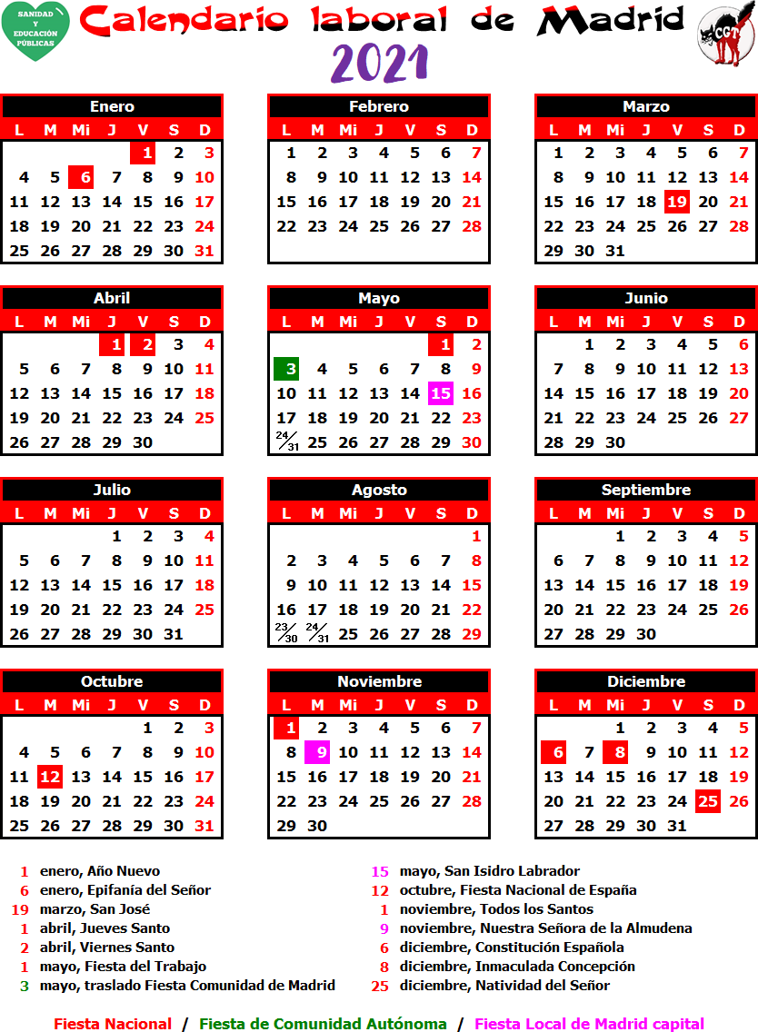 GAtos Sindicales: [MAD] Calendario laboral 2021 😈