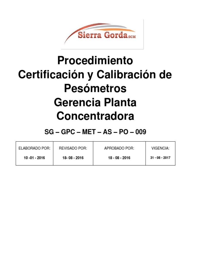 Procedimiento de Calibración y Certificacion Pesometros Rev 1 | PDF ... 😈