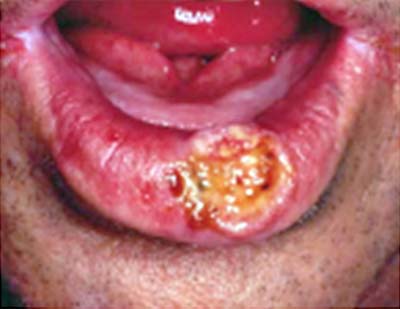 Carcinoma espino celular de labio . Lesión ulcerada en ... 😈