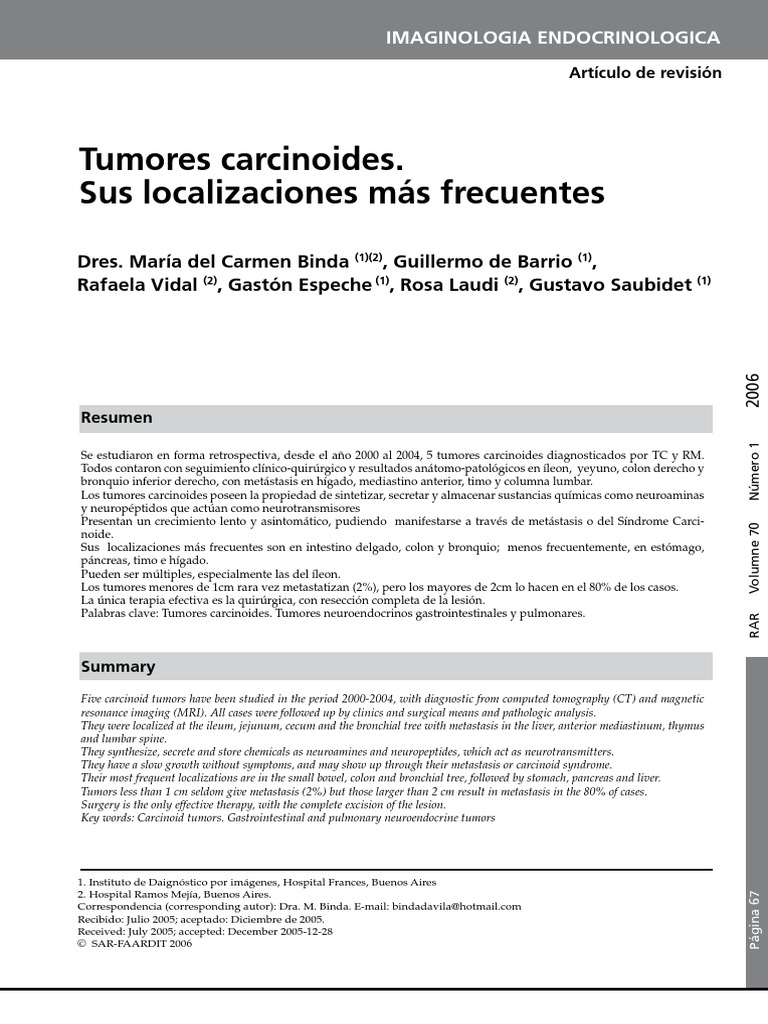 Tumores carcinoides. Sus localizaciones más frecuentes ... 😈