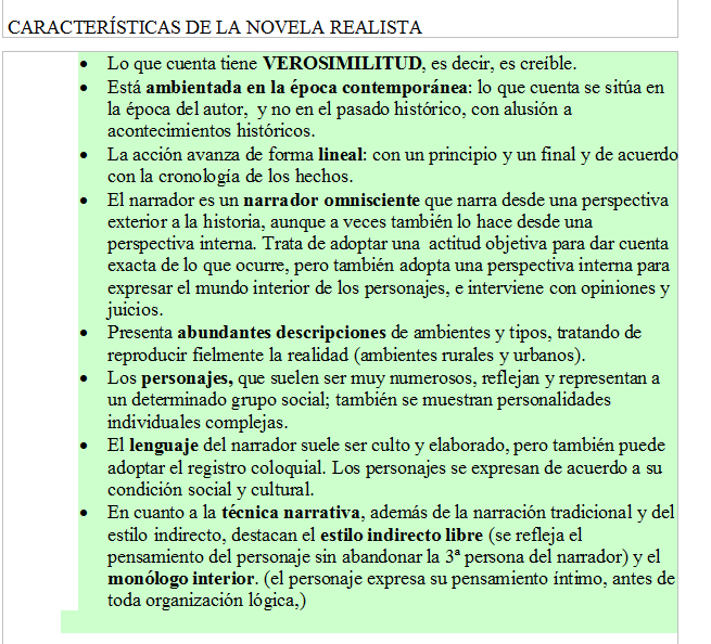 Portfolio de Castellano: LA NOVELA REALISTA: Características 😈