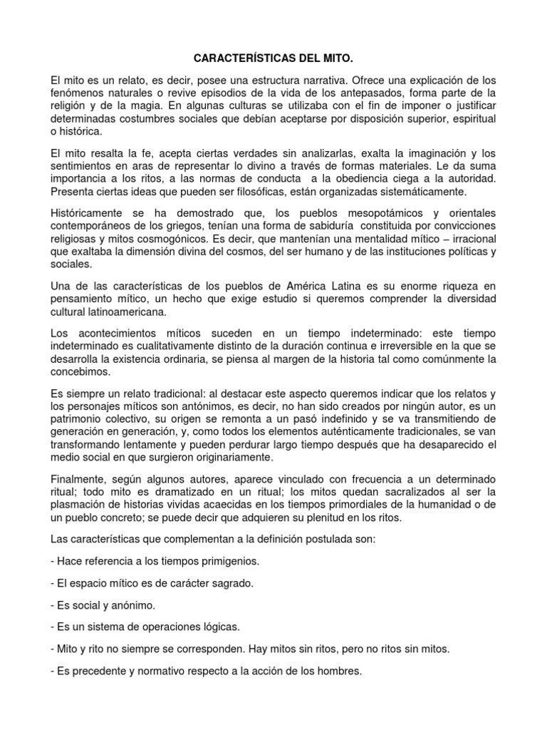CARACTERÍSTICAS DEL MITO.docx | Antropología | Religión y ... 😈