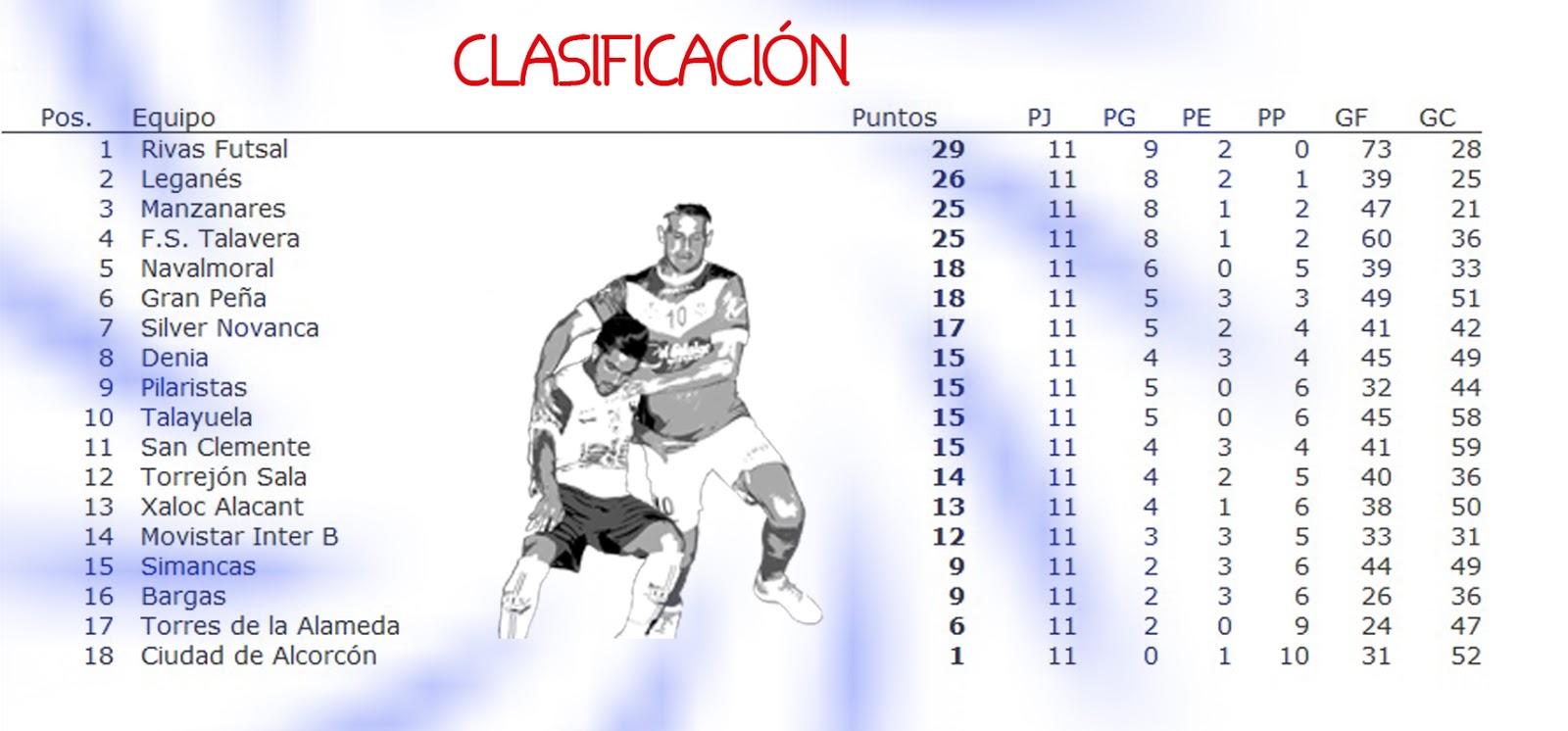 Clasificación de 1ª División de Fútbol Sala Femenino tras la 9ª Jornada ... 😈