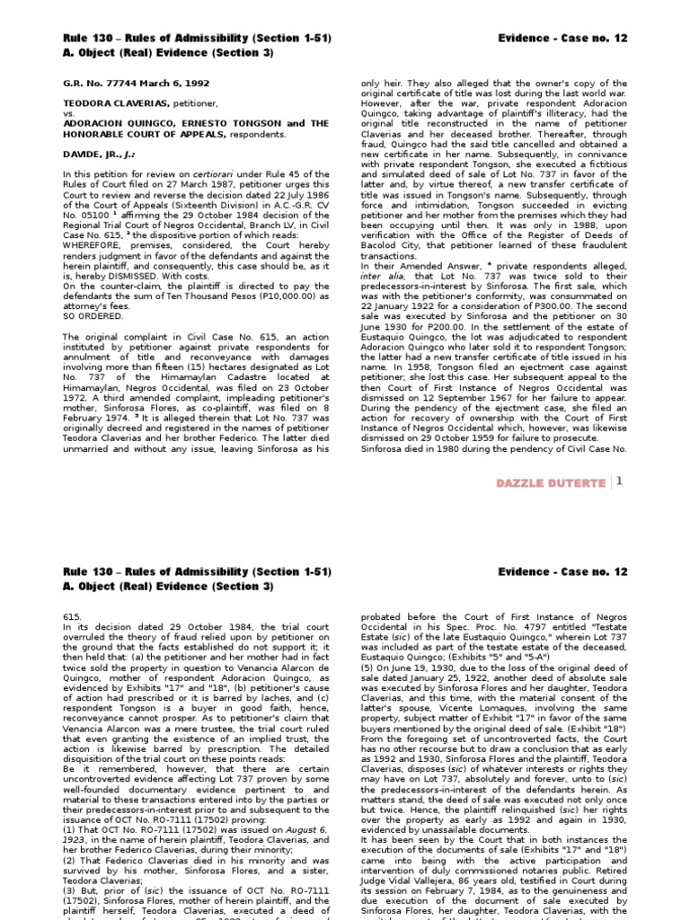 12 Claverias vs Quingco | Laches Equity | Evidence Law 😈