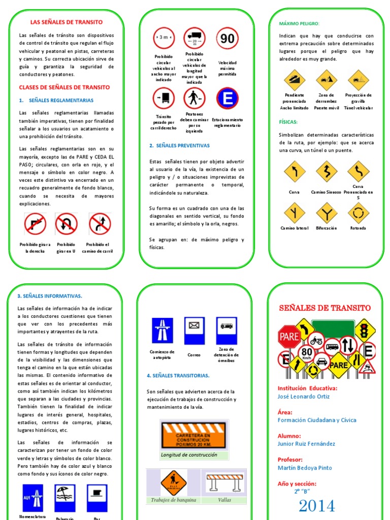 triptico señales de transito.docx | Peatonal | Transporte 😈