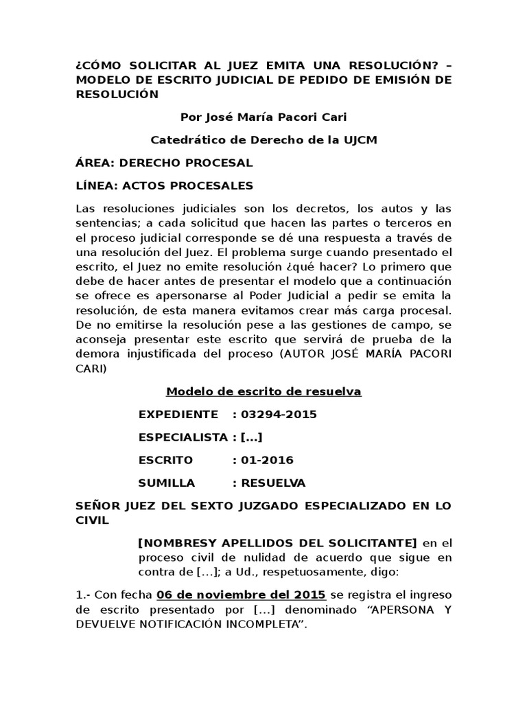 Cómo Solicitar Al Juez Emita Una Resolución – Modelo de ... 😈