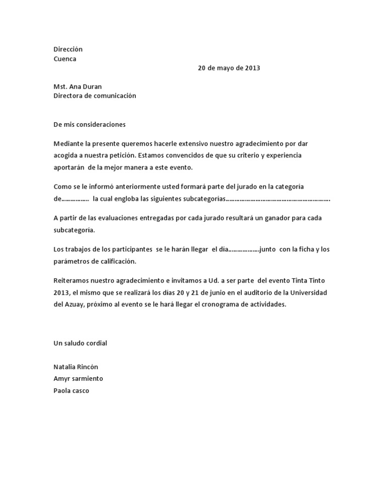 Modelo De Carta De Agradecimiento Por Invitacion A Un ... 😈
