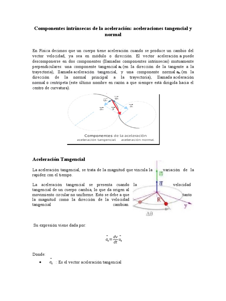 COMPONENTE NORMAL Y TANGENCIAL DE LA ACELERACION PDF 😈