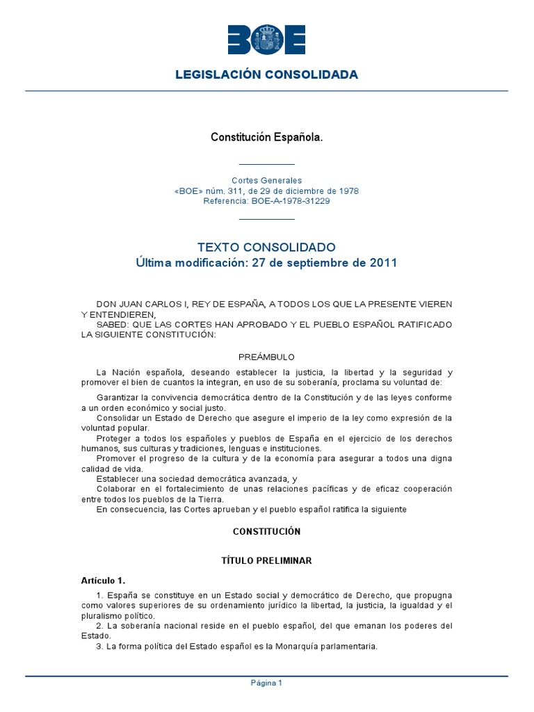 CONSTITUCION ESPAÑOLA BOE A 1978 31229 consolidado ... 😈